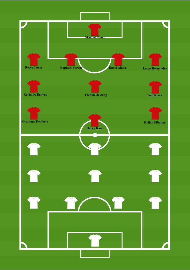 England’s captain, Harry Kane, takes the helm as the leading striker in this illustrious lineup. The prolific goal-scorer is also Bayern Munich’s record signing, holding the distinction of being the highest-paid player in Bundesliga history.